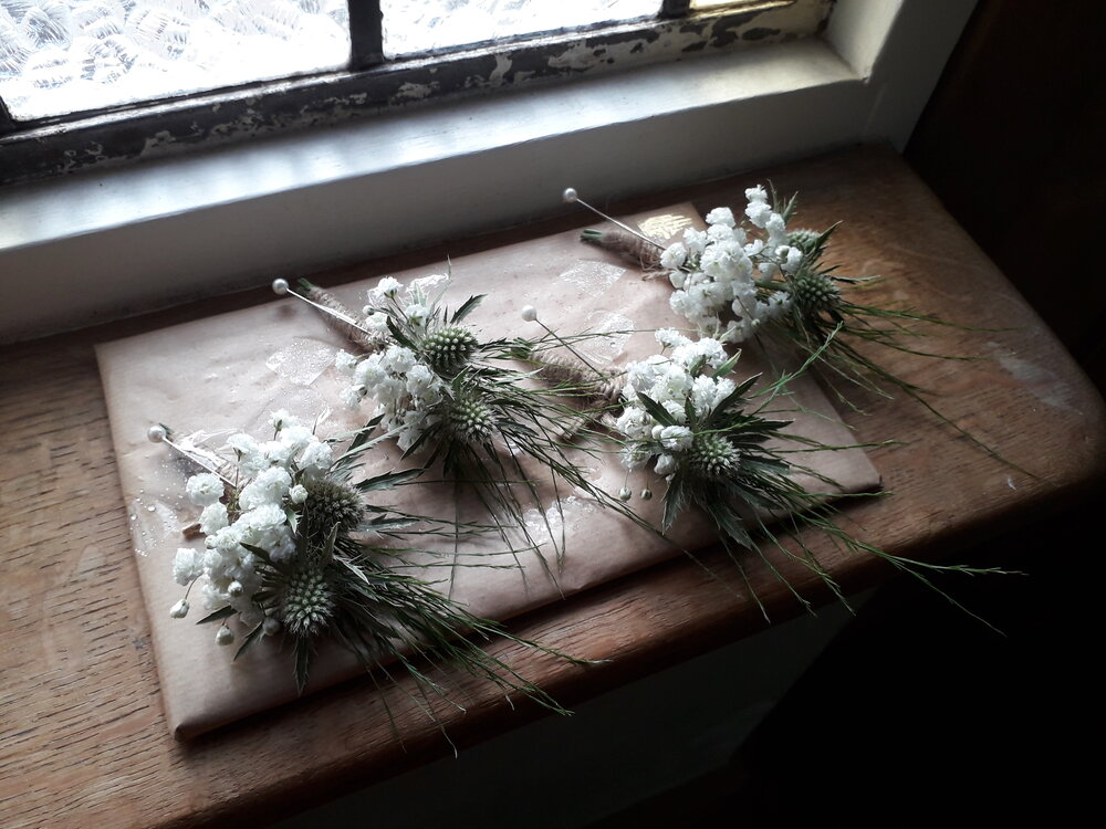 Buttonholes are a great way to tie in the theme of your wedding and are often worn by the bridal party which usually consists of the groom, best men and ushers/ groomsmen but couples often like to include parents and grandparents.