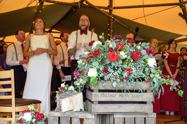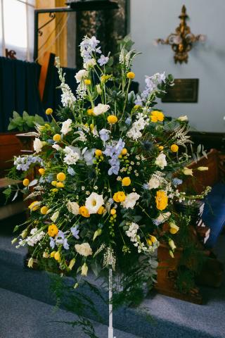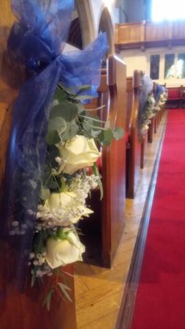 Pedestals are a really traditional choice for wedding ceremonies particularly in churches and can be placed on one or both sides of the altar/ platform. However, if you don’t like to stick to tradition but want to decorate your ceremony venue, you could have flowers flowing from rustic apple crates or even sitting on a tree stump. The great thing is you can re-use your pedestal arrangements at the reception too! For that added extra you can have pew ends on each row or on the floor along the aisle. It’s amazing how even something simple can lift a room!