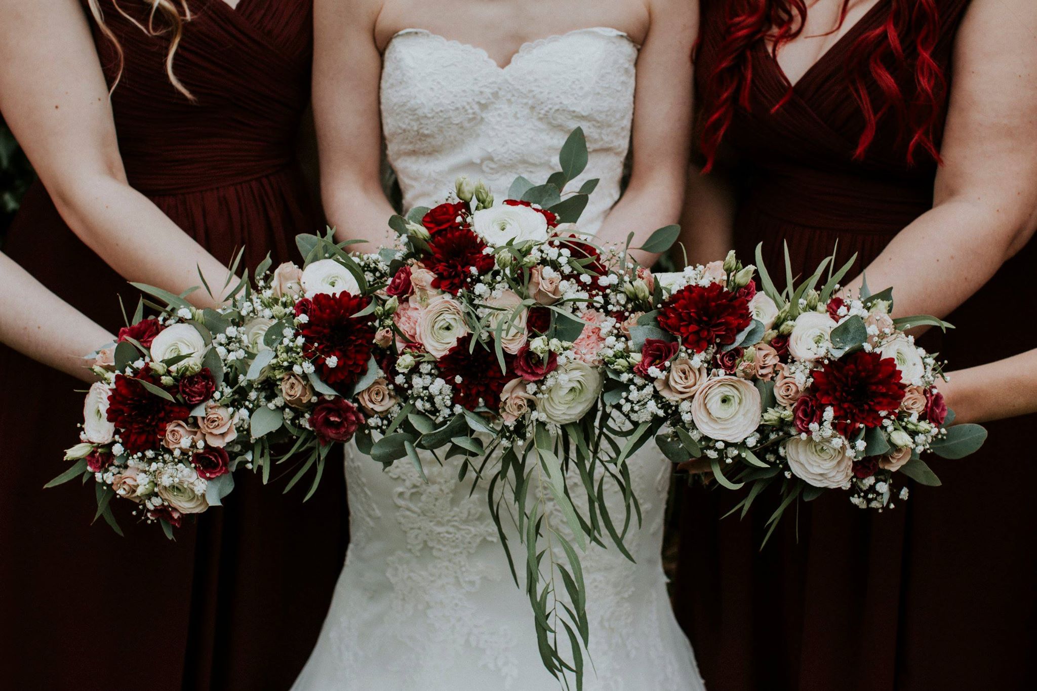 Chrysanthemums come in a vast spectrum of colours but the autumnal shades are particularly enticing at this time of year. The rich burgundy, burnt orange and bronze shades create a warm feeling and some varieties look quite similar to a dahlia. Chrysanthemums have been seen in the past as a cheap and cheerful flower, (let me tell you now, they are no longer cheap!) but they may be considered somewhat old fashioned now. You may not feel that a chrysanthemum spray would bring a classy vibe to your wedding but chrysanthemum blooms work really well in a bouquet if you want to include some big, bold heads. The main difference between chrysanthemum sprays and blooms is that the sprays have multiple, smaller heads on each stem whilst the blooms have one singular head. This goes for other flowers such as roses and carnations. When I first started as a florist, I wondered why there always seemed to be a head missing in the middle of a spray chrysanthemum. I eventually found out that the growers cut it off on purpose in order to encourage the flower to produce more blooms and in that way, it becomes a spray of flowers.