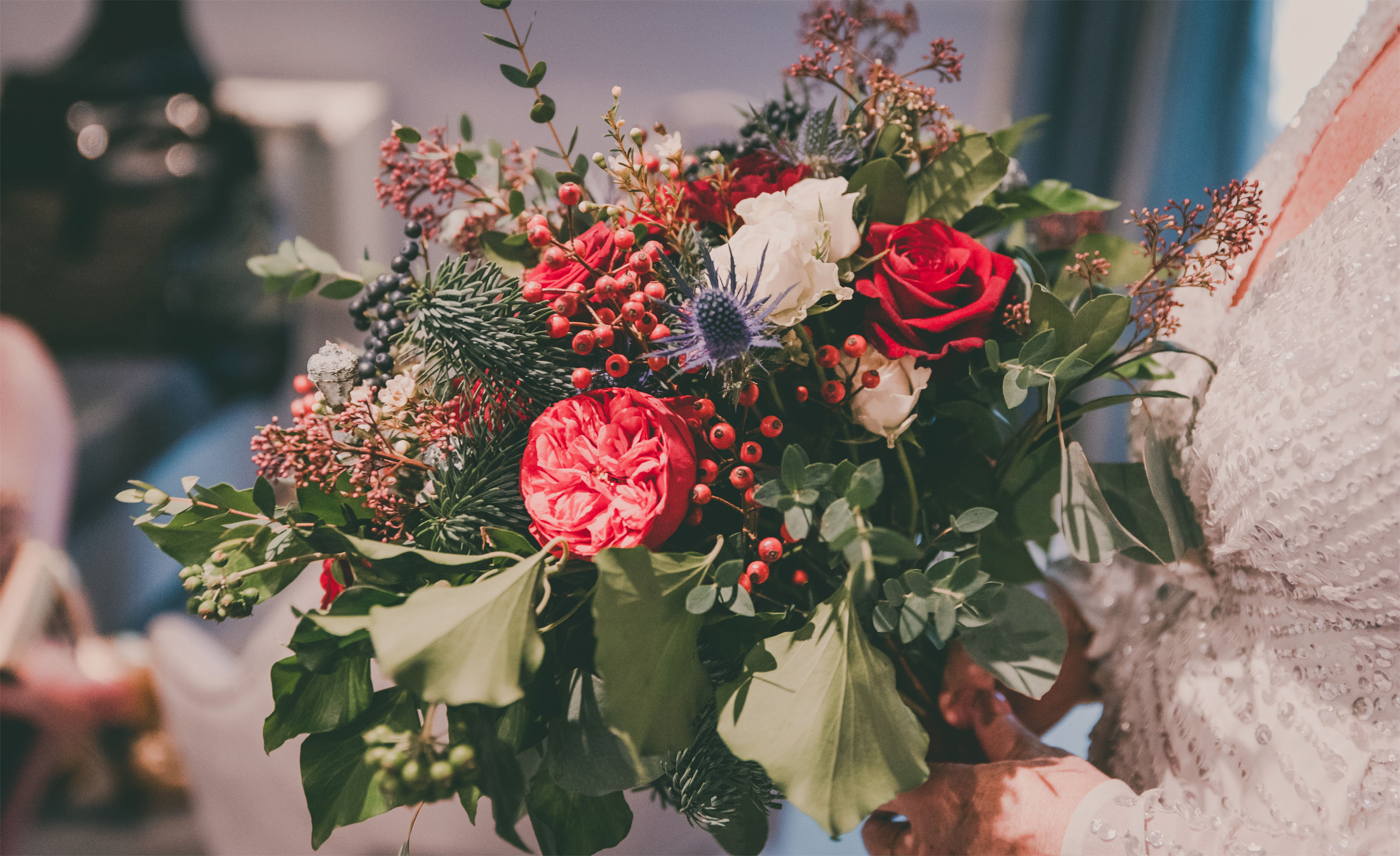 Although we’re still a whole month away from December, there are lots of berries coming into season which give a wintery feel. It is technically still autumn until the 21st December but berries are great for cozy wedding vibes! Ilex berry stems are full of bright red berries and you can get them with or without the foliage, also known as holly. You can get some holly varieties that are less prickly but expect a few scratches if you’re working with it! Other beautiful berries include corolla berries and rosehips. Whilst corolla berries are a round, red berry, rosehips tend to be more oval in shape and can be more orangey in colour.
