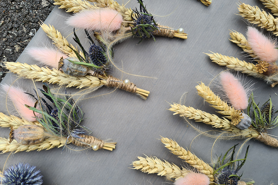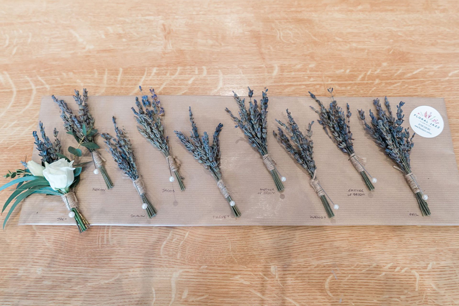 Their buttonholes are also out of water so if you want them to last (particularly if it’s on a hot day,) consider a longer lasting option like carnations or dried flowers.